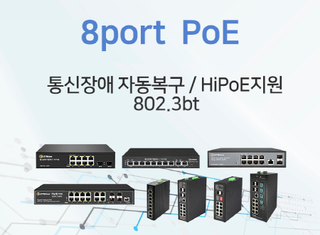 비관리형 / 지능형 / 산업용 PoE // 통신장애 자동복구 / Hi PoE지원 / 802.3BT