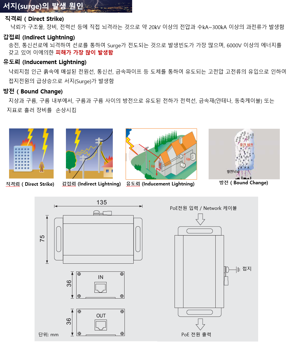 무선랜 AP 설치시, CCTV용 IP 카메라 서지방지--직격뢰, 간접뢰, 유도뢰, 방전