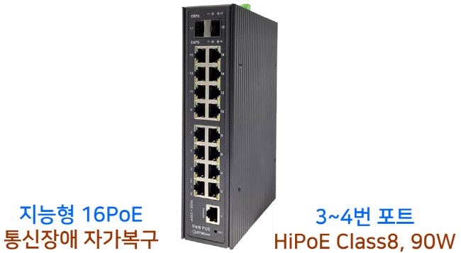 ◎옥외에 설치된 CCTV 및 AP가주변 환경의 전자파 또는 낙뢰시 써지보호기 문제로 인하여 PoE포트에 연결된 장비의 통신 상태 장애시, 포트별로 연결된 PoE네트워크 장비의 전원을 자동으로 off/on하여, 장비의 네트워크 연결을 자동 복구하는 지능형POE 장비 입니다.
